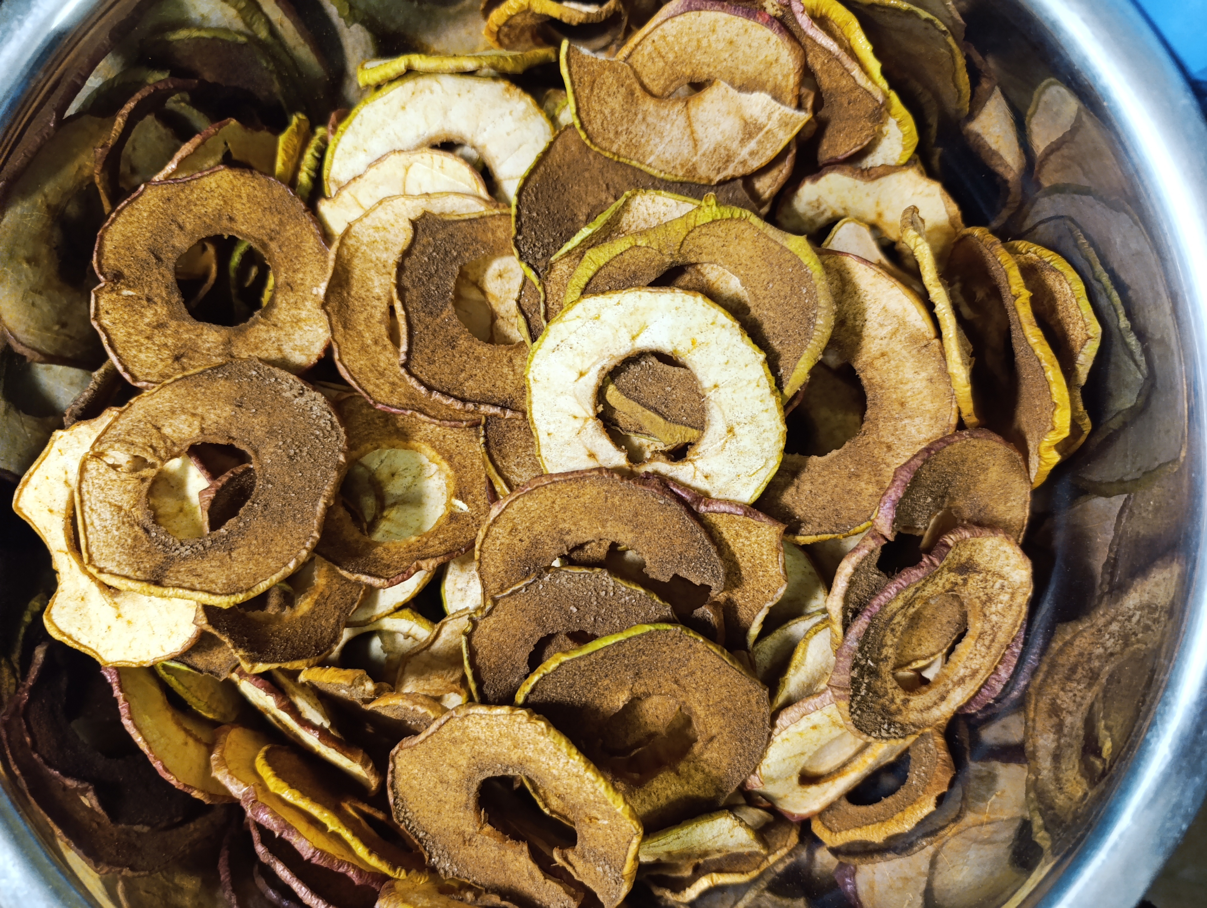 Нежные ломтики яблок, щедро присыпанные корицей и слегка карамелизированные сахаром. Натуральная сладость с пряным послевкусием — как домашняя шарлотка, только в кармане.